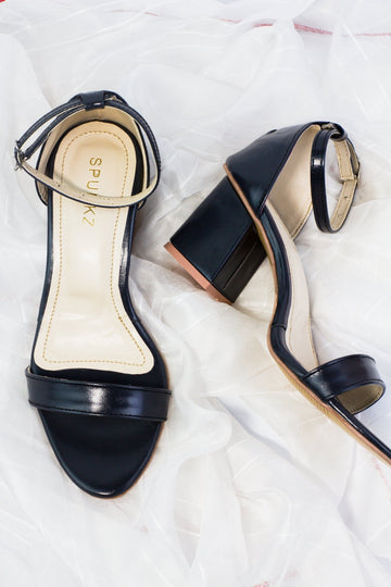 Description: These sleek black Spunkz sandals are the epitome of sophistication. With an adjustable ankle strap for a secure fit, these chunky block heels are perfect for pairing with the bold patterns of Alkaram’s Silver Unstitched Collection.