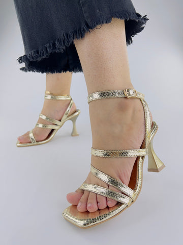 6. Spunkz Orla Metallic Gold Leather Heeled Sandals