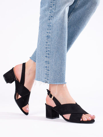 2. Spunkz Black Comfort Cross Over Block Heeled Sandals