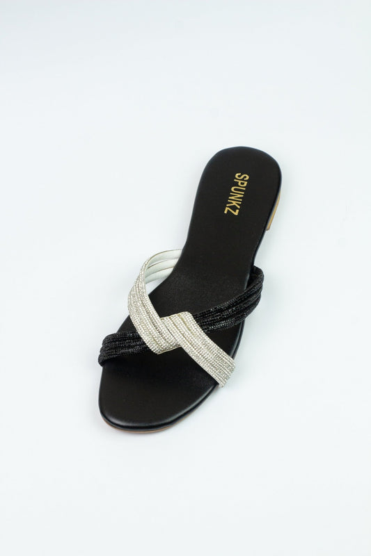 Shimmery Black Flat Sandals (11055)