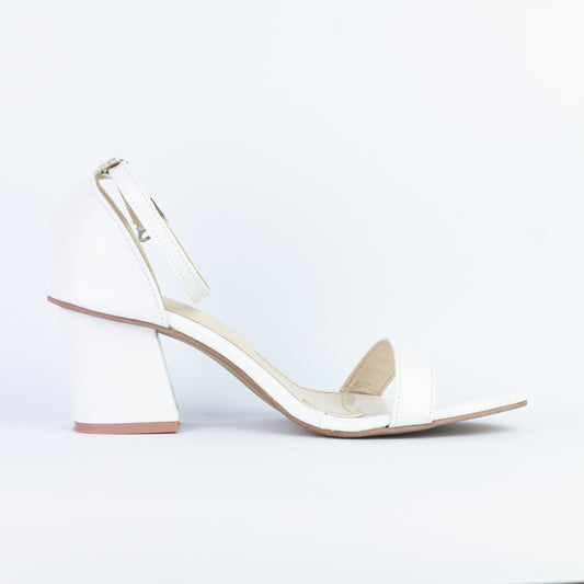 Liza White Chunky Heeled Ankle Strap Sandals-11031