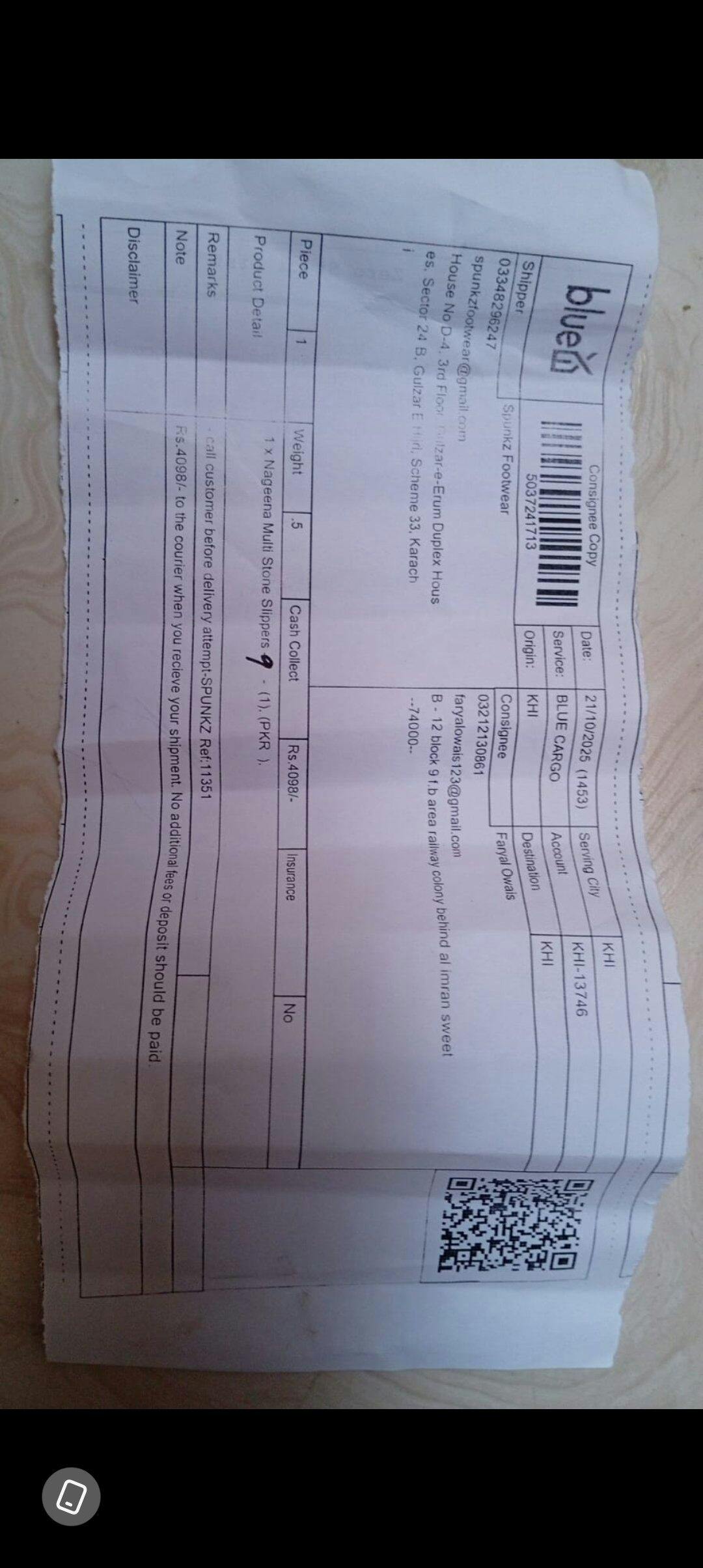 Orders usually arrive in 3–4 days in Karachi and 5–6 working days in other cities.