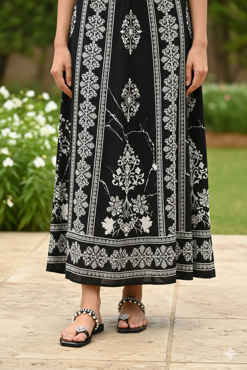 Black Floral Embroidery Slingback Heels